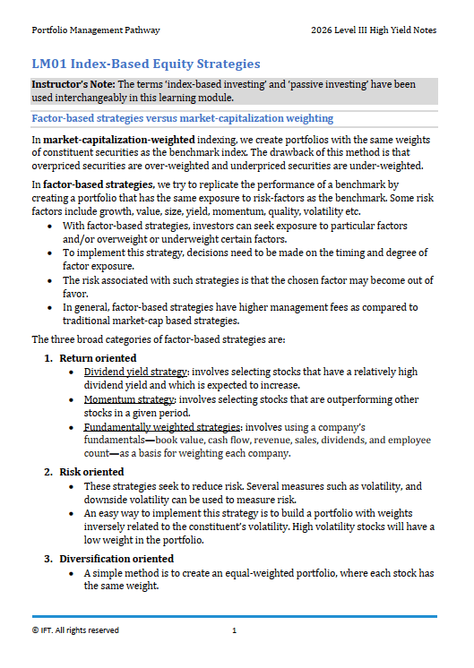 For sale is an e-Book 2026 CFA Level 3 IFT High Yield Notes Portfolio Management Pathway PDF.